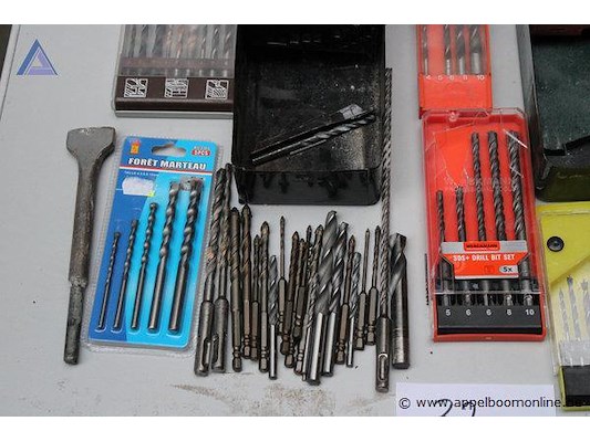 O.a. set metaalboren - diverse maten set houtboren - diverse maten set steenboren - diverse maten set boorhouders - diverse maten losse boren - diverse maten