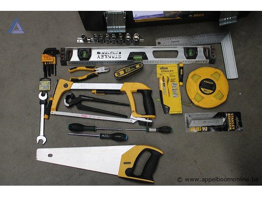 Gereedschapskoffer - stanley - fatmax set van rateldoppen - stanley metalen zaag - stanley - 300mm handzaag - stanley - 500mm waterpas - stanley set inbussleutels rolmaat - stanley schroevendraaierset - stanley