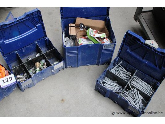 Koffer met schroeven koffer met plastic pluggen koffer met metalen onderdelen koffer met diverse accessoires koffer met bevestigingsmaterialen