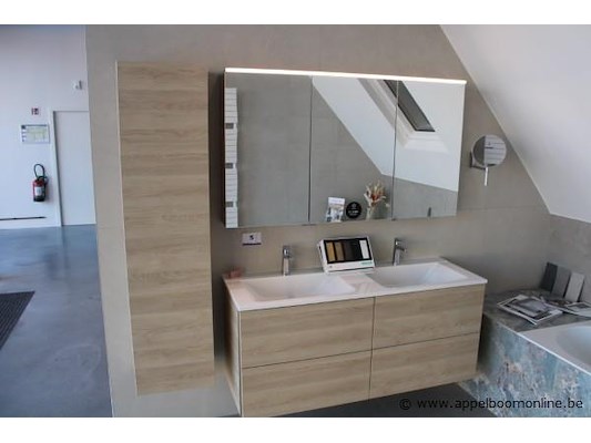 Showroom badkamermeubel vv dubbele spoelbak plus spiegelkast en kolomkast afm 140x49cm / 140x15cm / 160x40cm