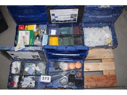 O.a. set bevestigingsmaterialen - berner - diverse maten kunststof clips - diverse maten bevestigingsschroeven - diverse maten plastic pluggen - diverse maten accessoireboxen - berner - leeg