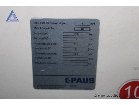 Verhuislift paus w09218107j5p06169, bj 2018 max 18m