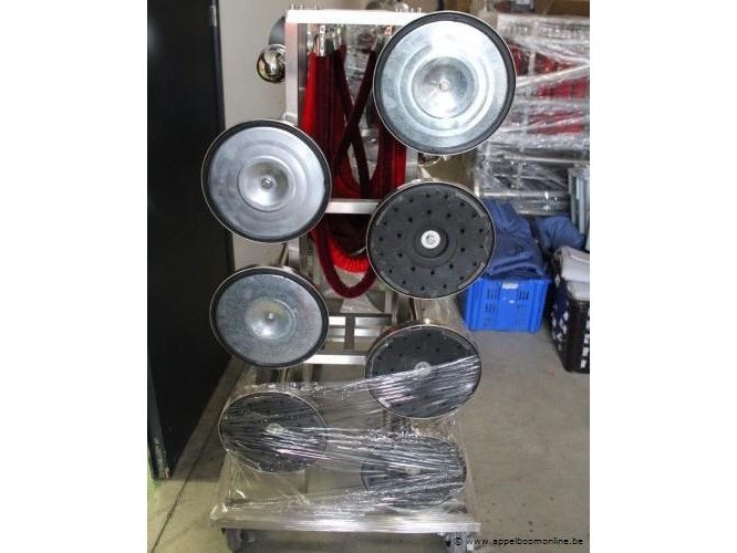 Transportkar inhoudend 14 rvs afsluitpaaltjes