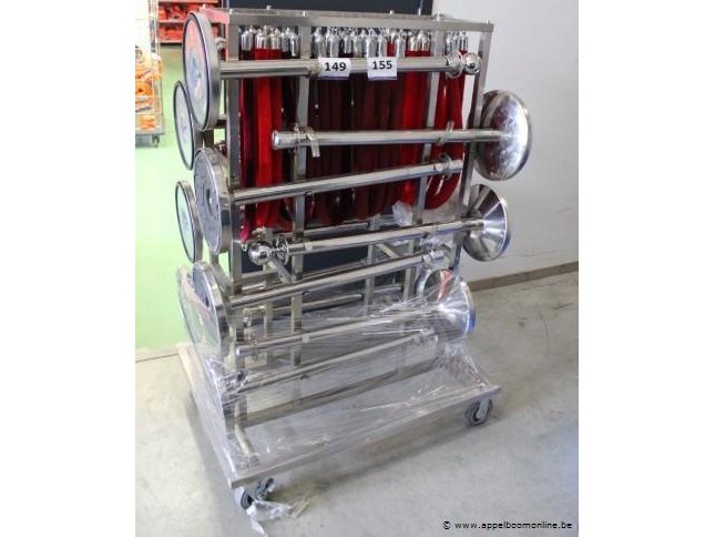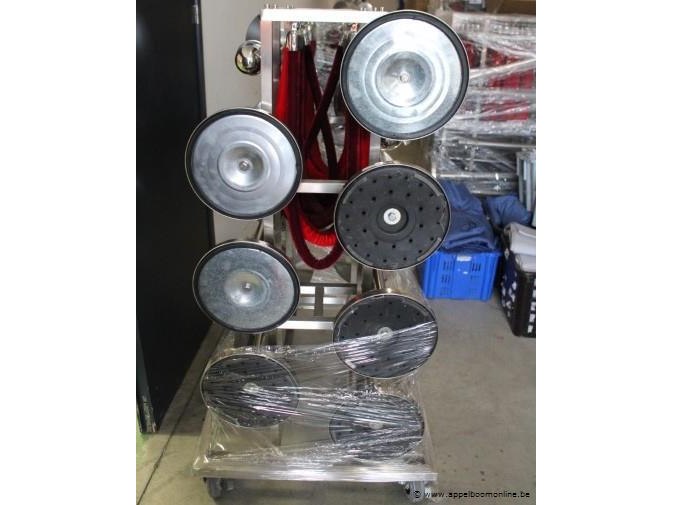 Transportkar inhoudend 14 rvs afsluitpaaltjes