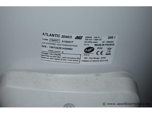 Boiler, atlantic, es-vs200mc-s22temw08vww, werking niet gekend