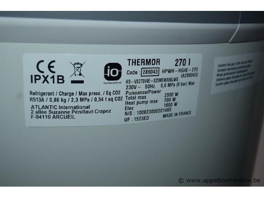 Warmtepompboiler, thermor, hpwh-hg4e-270 270 i, werking niet gekend