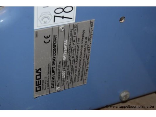 Ladderlift, geda, lift 250 comfort, 230v, 1.3kw, werking niet gekend