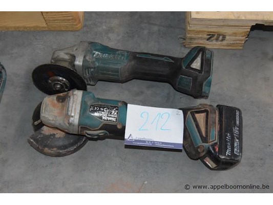 2x haakse slijper, makita, wo. dga506, 18v, met accu, werking niet gekend