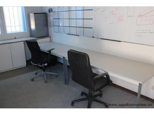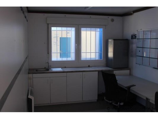 Bureelcontainer pl 6x3, vv dagramen, 2 deuren, keukentje, ijskastje, tafels, 2 stoelen, radiator