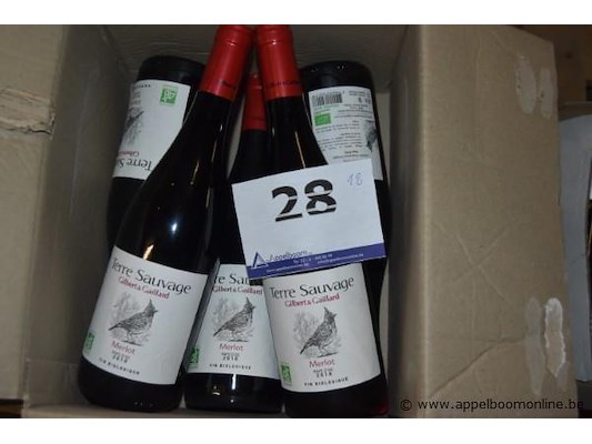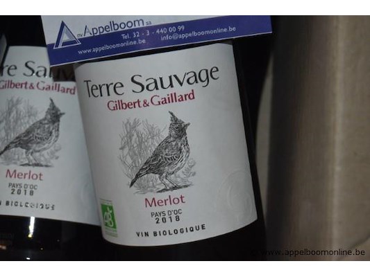 18x fles rode wijn, terre sauvage, merlot pays d'oc 2018, 750ml