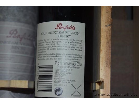 5x fles rode wijn, penfolds, cabernet sauvignon bin 707, 1998, 75cl