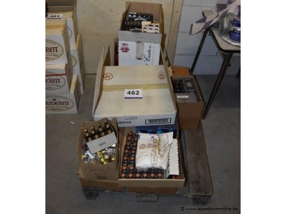 Pallet met diverse dranken, o.a. 24x miniatuur fles martini bianco, 12x miniatuur fles cognac martell v.s.o.p., doos jack daniel's