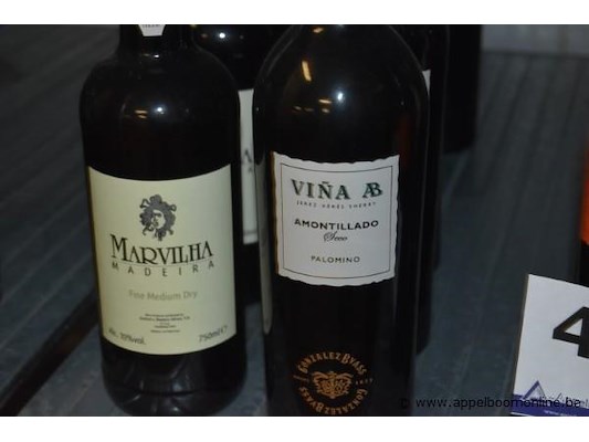 16x fles diverse wijn, sherry en port, o.a. marvilha madeira, viña b, drysack, demarcação, 75cl