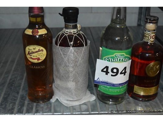 5x fles rum, matusalem clásico 70cl, rhum j.m v.o. 70cl, rhum charrette blanc 1l, bacardi gran reserva 10 jaar 70cl, bacardi black 1l