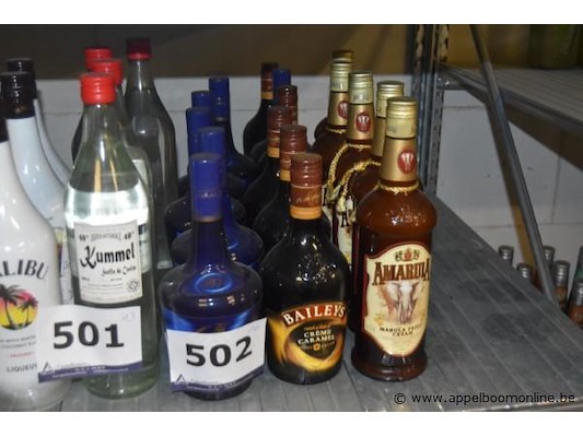 16x fles likeur, diverse merken (o.a. baileys, amarula, tia maria), diverse soorten