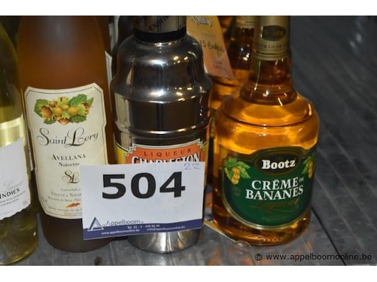 22x diverse flessen likeur en cocktailshaker, o.a. giffard, saint lery, bootz