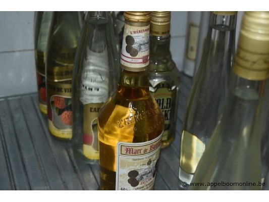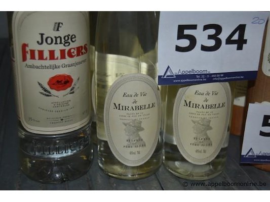 20x fles gedistilleerde drank, wo. 1x filliers jonge ambachtelijke graanjenever, diverse reserve du pere vages eau de vie de mirabelle en l'heritage de l'abbe rousseau marc de bourgogne