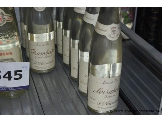 13x fles eau de vie, wo. 5x morand (kirsch vieux, abricotine du valais, golden delicacies), 8x f & e grimback (coing, framboise grande reserve, mirabelle reserve), 70cl