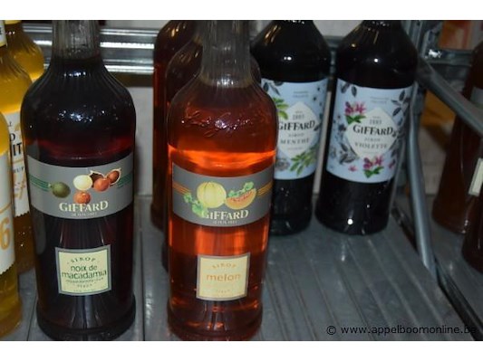 26x fles siroop, giffard, wo. pistache, mûre, lavande, macadamia, melon, menthe, violette, egg white, 1l