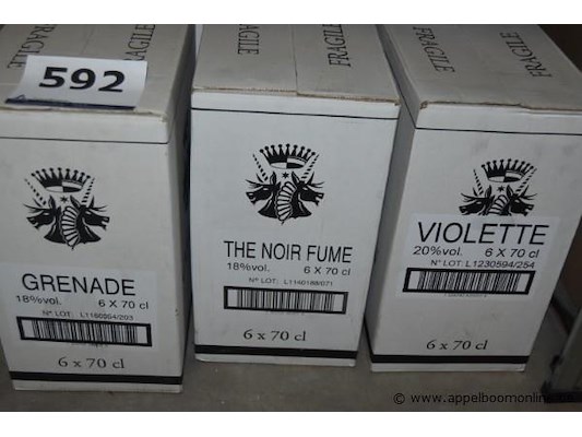 30x fles likeur, cartron, wo. grenade, the noir fume, violette, 70cl