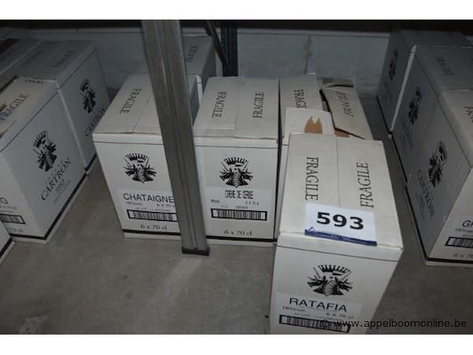 30x fles likeur, cartron, wo. chataigne (70cl), crème de cerise (70cl), ratafia (75cl)