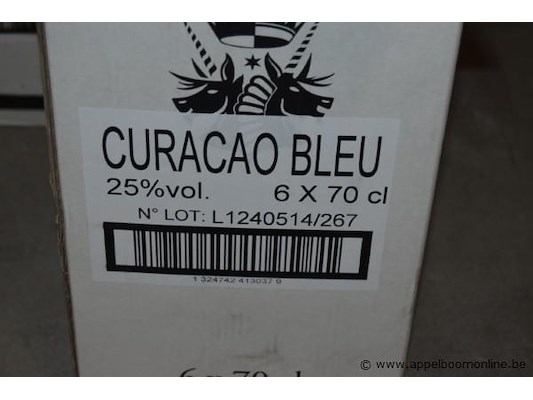 24x fles likeur, cartron, wo.curacao bleu, melon vert, pisang, 70cl
