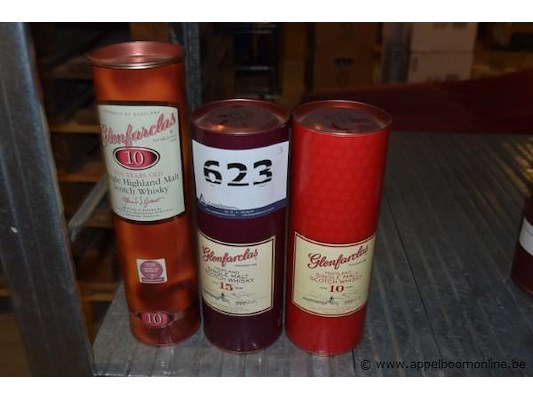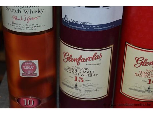 3x fles whisky, glenfarclas, wo. 2x 10 jaar, 1x 15 jaar, 70cl