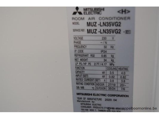 Airco buitenunit, mitsubishi electric, muz-ln35vg2, 230v, 3.5/4.0kw, r32, 2020, werking niet gekend