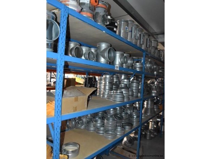 Lot diverse ventilatie onderdelen, wo. luchtkanalen, verloopstukken, t-stukken en kleppen met actuator, systemair, werking niet gekend