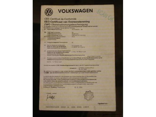 Hatchback volkswagen polo,benzine, 1390cm³,55kw,1e inschr 25/1/06,wvwzzz9nz6y162245, 187141km, co²-uitstoot ng, euro4, kenteken i+ii, gelijkvormigheidsattest, keuring na, 1sleutel