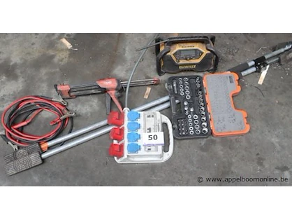 Lot diverse wo stekkerdoos, werfradio, kast met inhoud enz