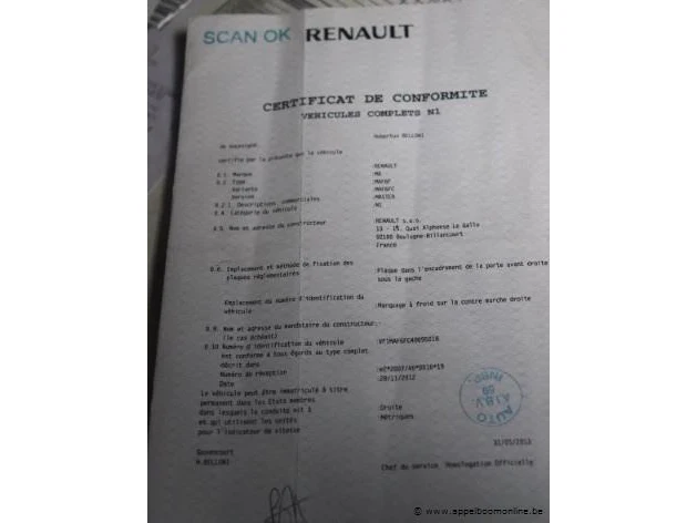 Lichte vrachtwagen renault master, datum 1ste inschrijving 20/5/2013, chassisnummer vf1maf6fc490995018, km-stand 138.288, euro 5, schade rondom carroserie