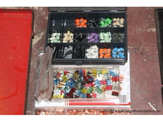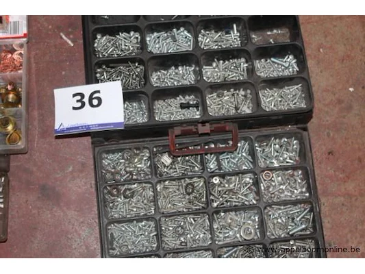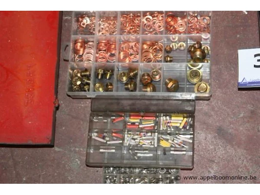 Diverse materiaalkoffertjes inh wo. schroeven, koperen ringen, etc