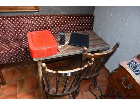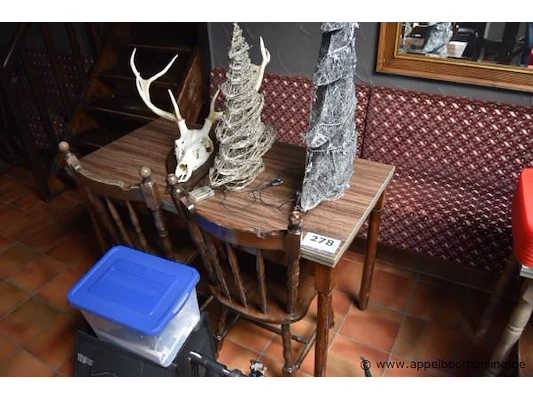 2 rechthoekige houten tafels vv 4 stoelen (staande op 1e verdieping)