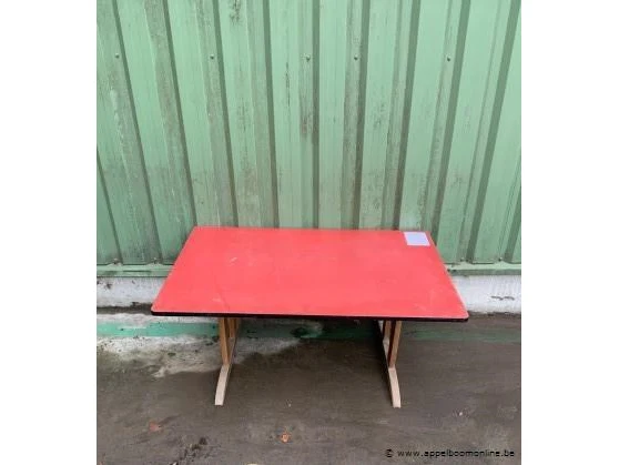Oude houten schooltafel afm plm 120 x 80 x 52 cm