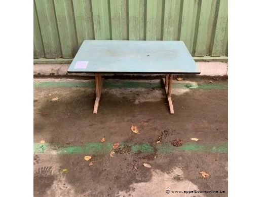 Oude houten schooltafel afm plm 120 x 80 x 52 cm