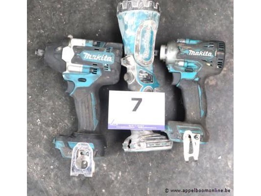 2 accu moerenaanzetters makita en looplamp, zonder batterij, werking niet gekend