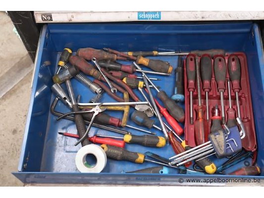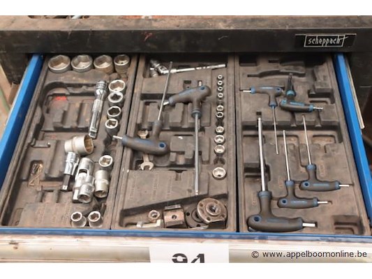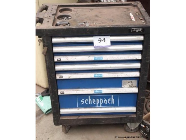 Verrijdbare gereedschapswagen scheppach met inhoud