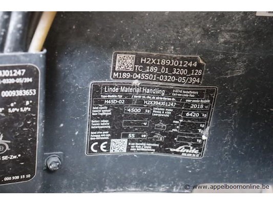 Vorkheftruck linde h45d-02, bj 2018, cap 4500kg, serienummer h2x394j01247, 10115 uren