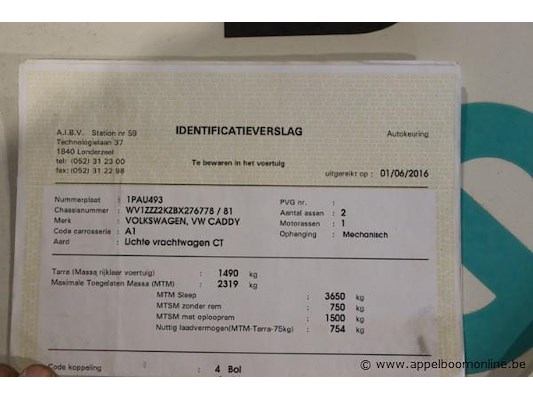 Lichte vrachtwagen volkswagen caddy, datum 1ste inschrijving 18/03/2011, chassisnummer wv1zzz2kzbx276778, km-stand, euro 5, diesel