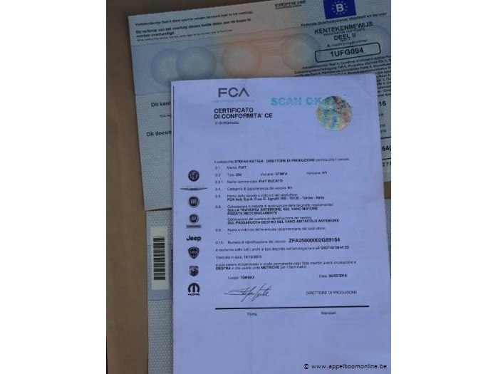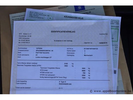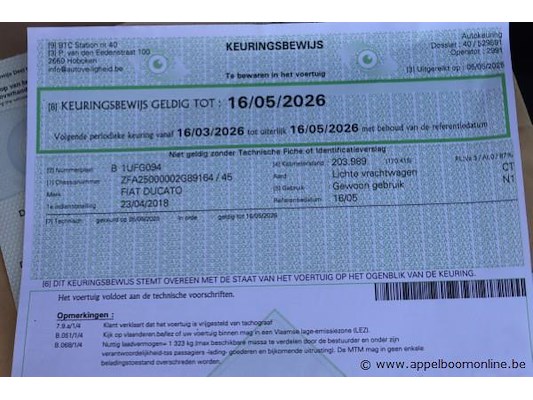 Lichte vrachtwagen fiat ducato, datum 1ste inschrijving 23/4/2018, chassisnummer zfa250000002g89164, 215026km, euro 6b, co2 165, kenteken i+ii, gelijkvormigheidssattest
