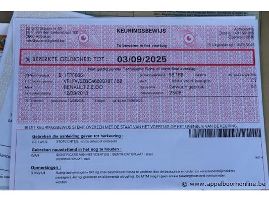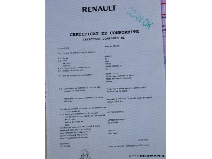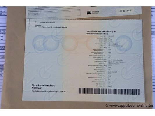 Lichte vrachtwagen renault z e oo, datum 1ste inschrijving 12/9/2013, chassisnummer vf1w0zbc46608787, 58491km, euro 5, elektrisch, kenteken i+ii, gelijkvormigheidssattest