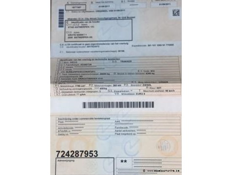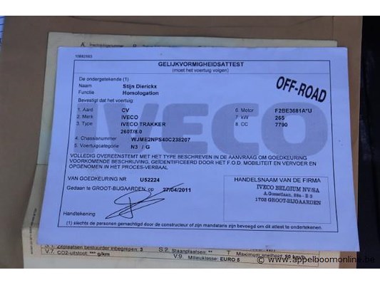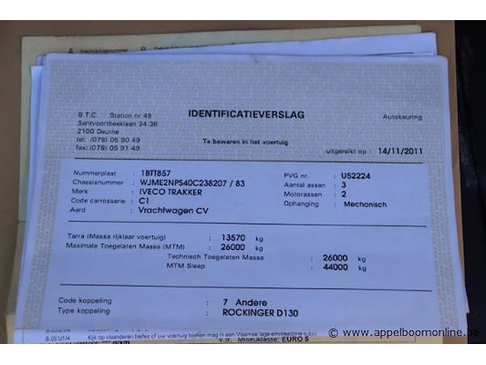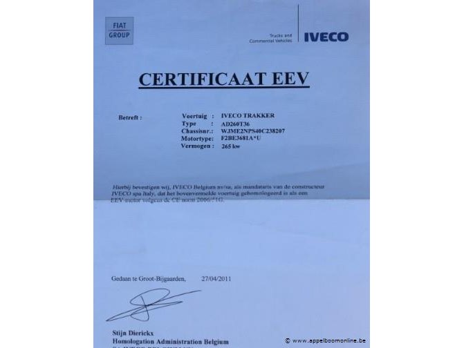 Containervrachtwagen iveco trakker ad260t36, datum 1ste inschrijving 11/9/2011, chassisnummer wjme2nps40c238207, km-stand keuring 9/25 31.445, euro 5, diesel, kenteken, gelijkvormigheidssattest