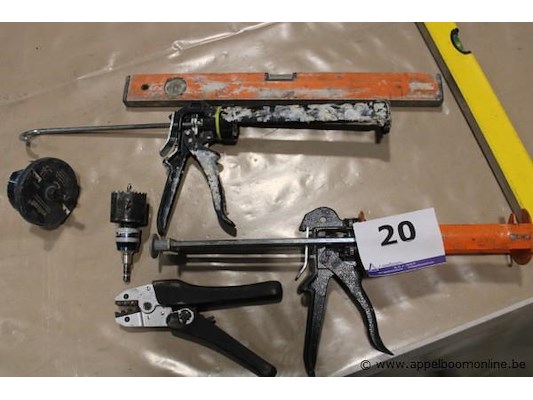 Handgereedschap (kitpistool, waterpas, tangen en toebehoren) – diverse merken