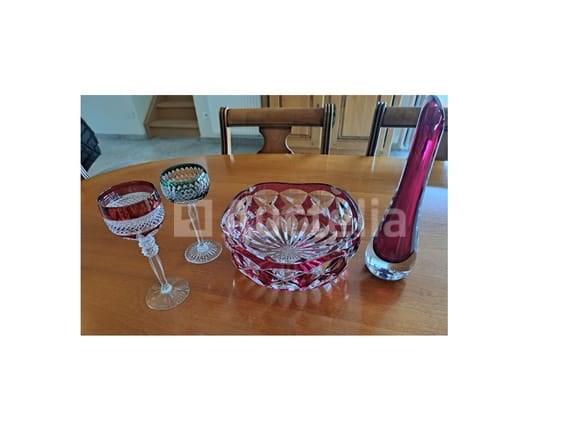Val-saint-lambert kristallen fruitkom en vaas, 2 kristallen glasen