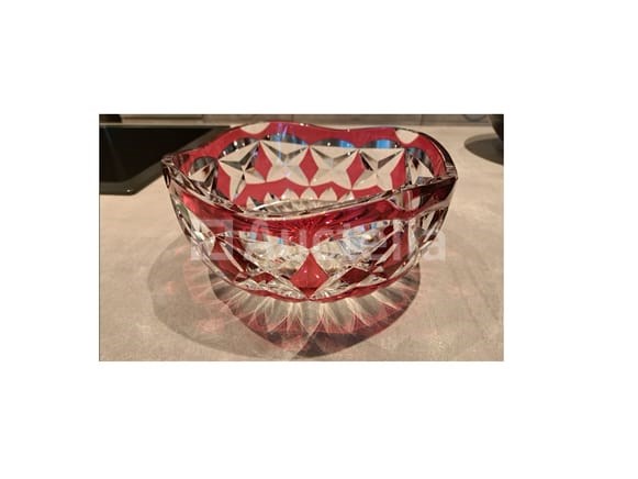 Kristallen fruitkom Merk: Val-Saint-Lambert Dimensie: . Diameter: 25 cm . Hoogte: 11 cm Kristallen Vaas Merk: Val-Saint-Lambert Dimensie: . Hoogte: 30 cm Kristalglas Aantal: 2 stuks