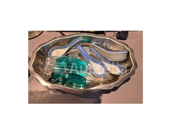 Koffie-/espressomachine (met koffie of dosis) Merk: DELONGHI Model: EC710 De DeLonghi EC710 koffiemachine is een koffie-/espressomachine met een watertank van 1,3 L. Deze exclusieve roestvrijstalen espressomachine garandeert een perfect smakende espresso/cappuccino. Nieuwe aankoopwaarde: +/- 140€ Status: Functioneel Kristal karaf Vleesgrill Merk: TEFAL Status: Functioneel Kaviaarset Foie gras-set Kaasplank Ingericht voor het ontkurken van wijn Diversen Notities: . Bied kratten aan om de verschillende voorwerpen te verwijderen