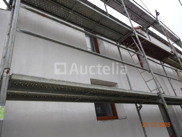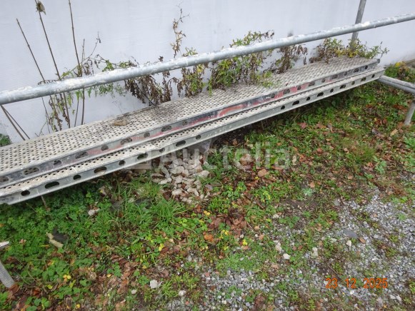 1 steiger waaronder: +/- 42 staanders van 2 meter +/- 45 dwarsbalken van 2m90x31cm 4 houten vloeren met openingsval Opmerking: door de klant op afspraak te demonteren