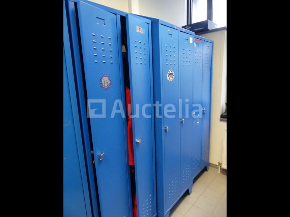 Garderobe/kluisjes Merk: Delbart Lengte: 61 cm Breedte: 51 cm Hoogte: 205 cm Aantal: 3 2-deurs lockers Opmerkingen: Stuk grond op de eerste verdieping via de trap