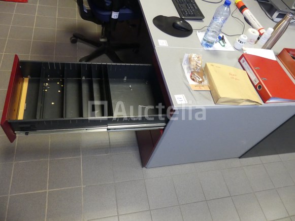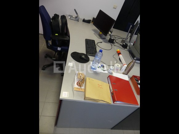 Lot waaronder: 1 x 180cm x 100cm x 73cm bureau 1 x 40 cm x 80 cm x 73 cm ladekast 1 x Kantoorstoel Opmerkingen: Stuk grond op de eerste verdieping via de trap